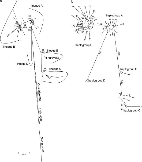 Mouflon continue to be in Haplogroup B, O. orientalis and other wild sheep didn’t cluster but are branching with Haplogroup D from Haplogoup A. Meadows et al., urges cation in making claims as the differences are greater than those between Haplogroup C and D. A common ancestor exists but is not identified.
